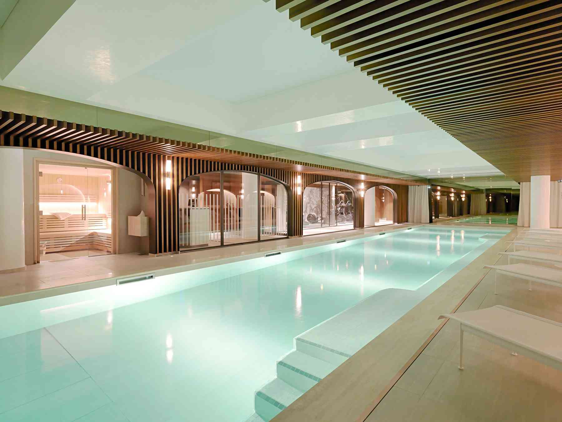 Vous rêvez de prendre un bain de minuit été comme hiver ?. – Les 1672 pieds carrés de spa vous offrent une expérience unique – Les designers d`intérieur de Mayer Davis Studio ont aménagé l`interieur de l`hôtel;. Tout pour l’aménagement intérieur, les murs, les sols, les cloisons et les plafonds plaques de plâtre, profilés métalliques, plâtre en poudre, enduits, etc Les plus grandes marques disponibles de stock.