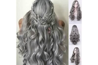 Accessoire De Coiffure Aucune 70cm Sexy Degrade Gris Parti Perruques Longs Cheveux Boucles Couleurs Melangees Perruque Synthetique Darty
