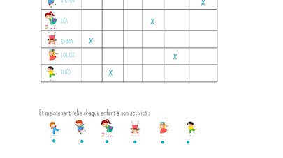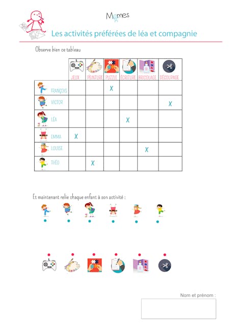 10 avr 18 Le tableau à double entrée est un premier pas vers les mathématiques en maternelle Ici il s'agit de croiser une expression de visage avec une coiffure Un exemple est présenté, c'est ensuite à l'enfant de bien observer et de mixer les deux informations entre chaque ligne et chaque colonne pour former les bonnes combin. Bonjour, Bravo Jeff, j'apprécie surtout l'idée du formatage conditionnelCelle du pilote de données, avec les cochages et décochages, me séduit moins Quant au tableau à double entrée, outre des difficultés de mise en œuvre (il y a parfois plusieurs noms à la même heure le même jour), sa consultation ne serait pas plus simple, à mon avis, que la consultation directe du tableau. Tableaux à double entrée clique sur une image ces jeux fonctionnent avec internet explorer, firefox, opéra, google chrome les souris peintres couleurs et formes la chenille qui fait des trous couleurs et nombres les chapeaux des sorcières graphismes et formes boucle d'or fait des bouquets.