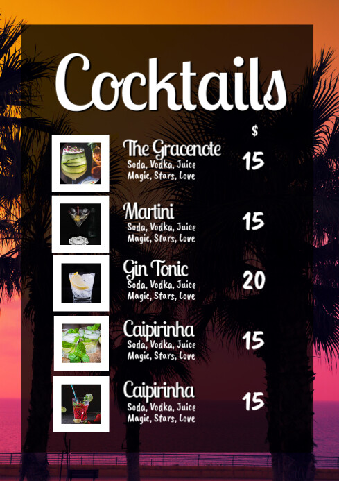 Modele Cocktail Carte Boissons Party Bar Restaurant Annonce Postermywall