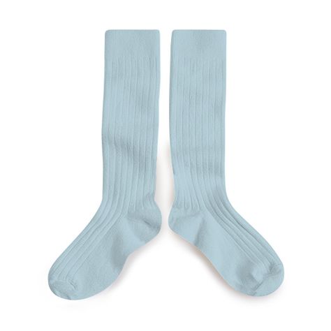 La Haute Plain Ribbed Knee High Socks Bleu De Pastel