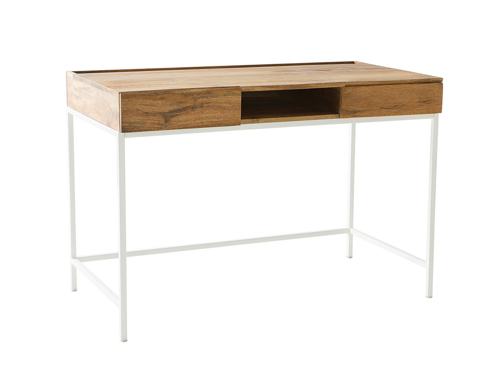 Bureau Design Manguier Massif Et Metal Blanc Boho Miliboo