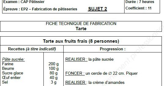 Les Sujets Ou Fiches Techniques Ft Du Cap De Patisserie Depuis 09 Conseils Cap Patisserie