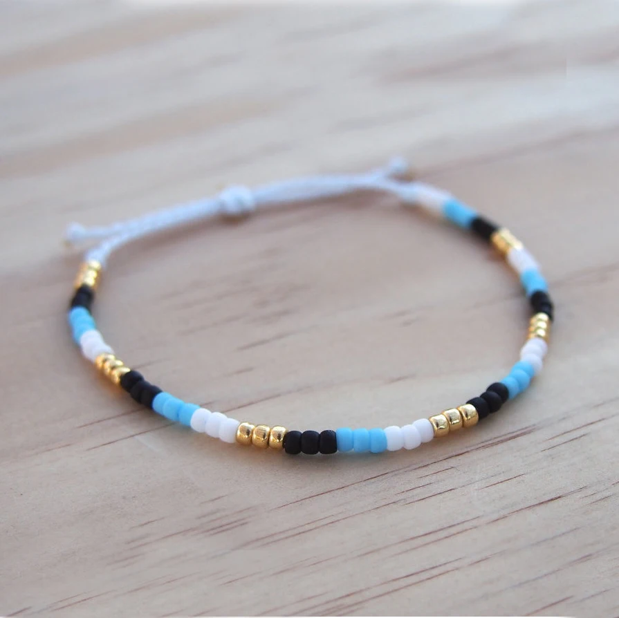 Bracelet Fin Multirang Perles De Rocaille Bleu Turquoise Blanches Et Plaque Or Bracelets Fins Bracelets En Perles De Rocaille Bracelet En Perles