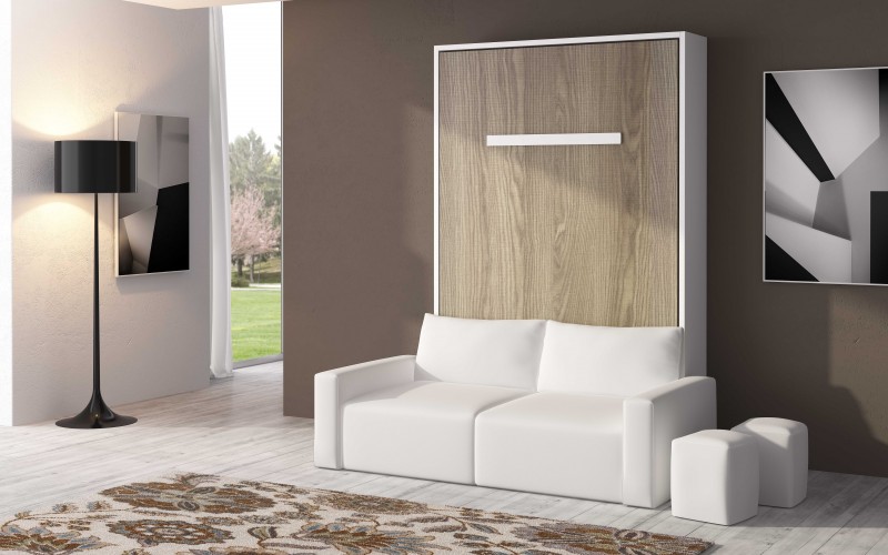 Smart Armoire Lit Escamotable Verticale 140x0 Avec Canape Et Etagere