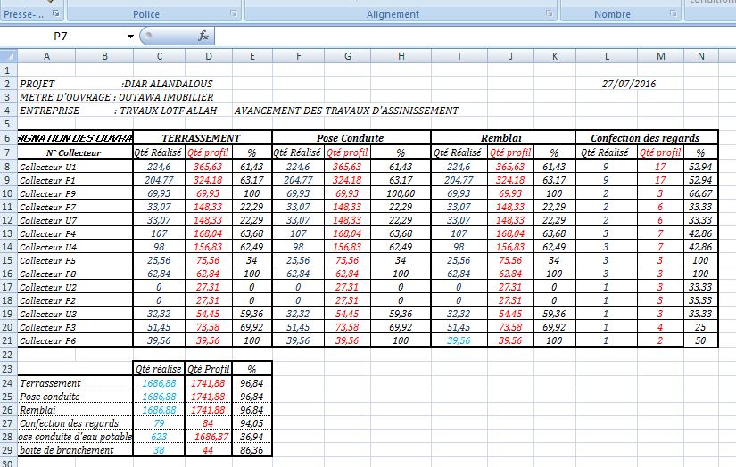 Tableau Avancement Travaux Assainissement En Excel Cours Assainissement Urbain