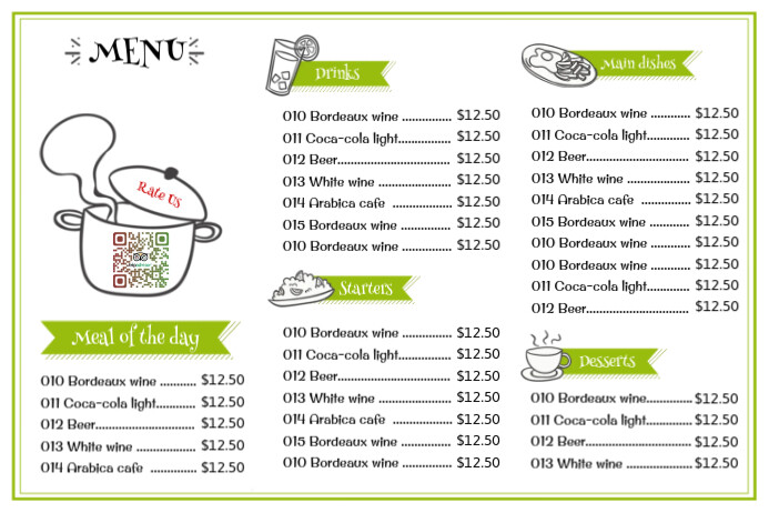 Fresh American Grill View Menu, Find a Location and Visit Today!. Use our French menu template designs to give your restaurant a Frenchinspired look Styles range from casual to formal dining Customize easily and try our professional printing!. Quand j'arrive dans un restaurant, le serveur me donne la carteSur la carte, le menu propose des entrées, des plats, des desserts et des boissons (de l'eau, du vin, des sodas, ) Je choisis, le serveur vient prendre la commande et il revient me servir l'entrée, le plat et le dessert A la fin du repas, quand je veux payer et quitter le restaurant, je demande l'addition au serveur "L.
