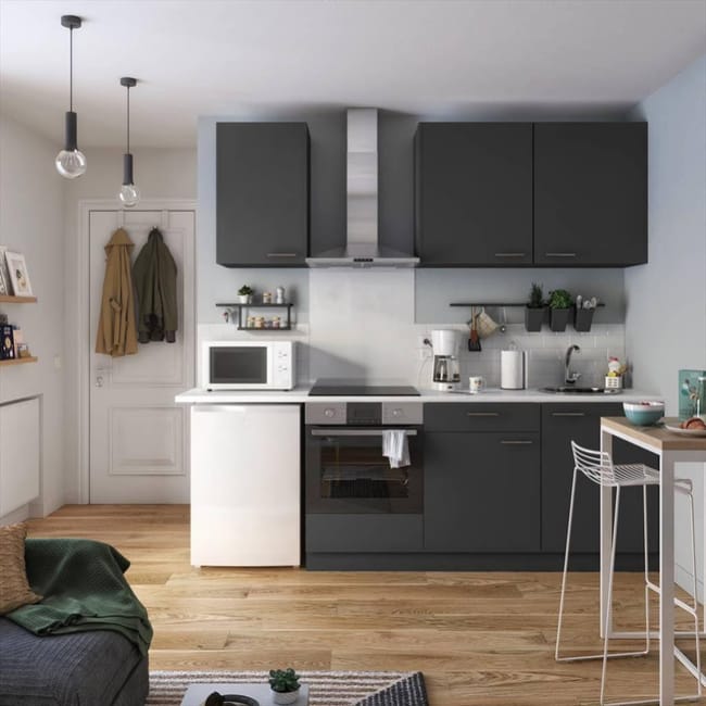Cuisine Sofia Gris Fonce Mat L 235 Cm Avec Meuble Haut Et Bas Leroy Merlin