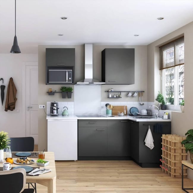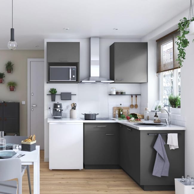 Cuisine Sofia Gris Fonce Mat L 3 Cm Avec Meuble Haut Et Bas Leroy Merlin
