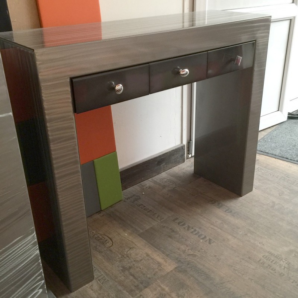 Console tables are taller, narrow side tables which can be often found in the hallway Combining practicality with aesthetics is of great importance after all, console tables are perfect for setting up displays to create a welcoming atmosphere, but also offer a small storage surface near the front door where keys, gloves and mail can be put down. Le design industriel et le mélange de bois et de métal de cette console apporteront du style à votre pièceFICHE TECHNIQUE Structure du meuble en panneau de particules 18/15/12 mm recouvert d'une feu. Une console design et tendance peut servir de table d’appoint, bout de canapé, meuble d’entrée et petit meuble de rangement Pour choisir votre console, rendezvous directement sur notre boutique en ligne.
