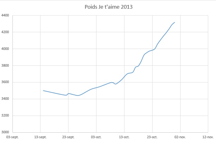 Courbes de poids de vos chatons, courbe moyenne par sexe, race, graphique du nombre d'échantillons par semaine par sexe, race, impression des courbes de poids et des données associées, export des données (prochainement), Et d'autres à venir, vos remarques sont les bienvenues. Courbe de poids montrant en image l’évolution d’un chaton Maine Coon I’m Bad est né chez nous le 24/10/13 Nous l’avons Sélectionné, pour ses nombreuses qualité afin d’ assurer la relève de notre chatterie Il est le digne descendant de For Me de Nikkocoon’s notre belle femelle Black silver. Re Courbe de poids chaton chartreux par valyelea » Mercredi 14 Décembre 11 1858 Mystic ma chartreuse a 13 ans et fait 7kg 500, oui elle n'est pas legere ,mais a toujours été bien ronde et toujours en bonne santé c'est la seules des 3 de mes mimines qui n'a jamais vu le véto,une fois a 6 mois pour la sterilisation.