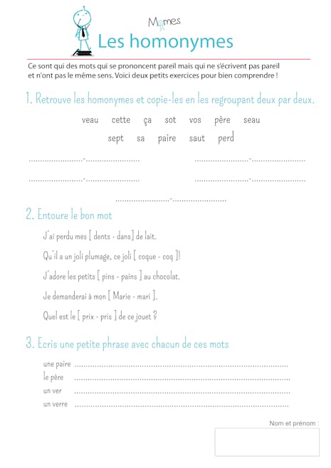 Les Homonymes 2 Exercice D Ecriture A Imprimer Momes Net