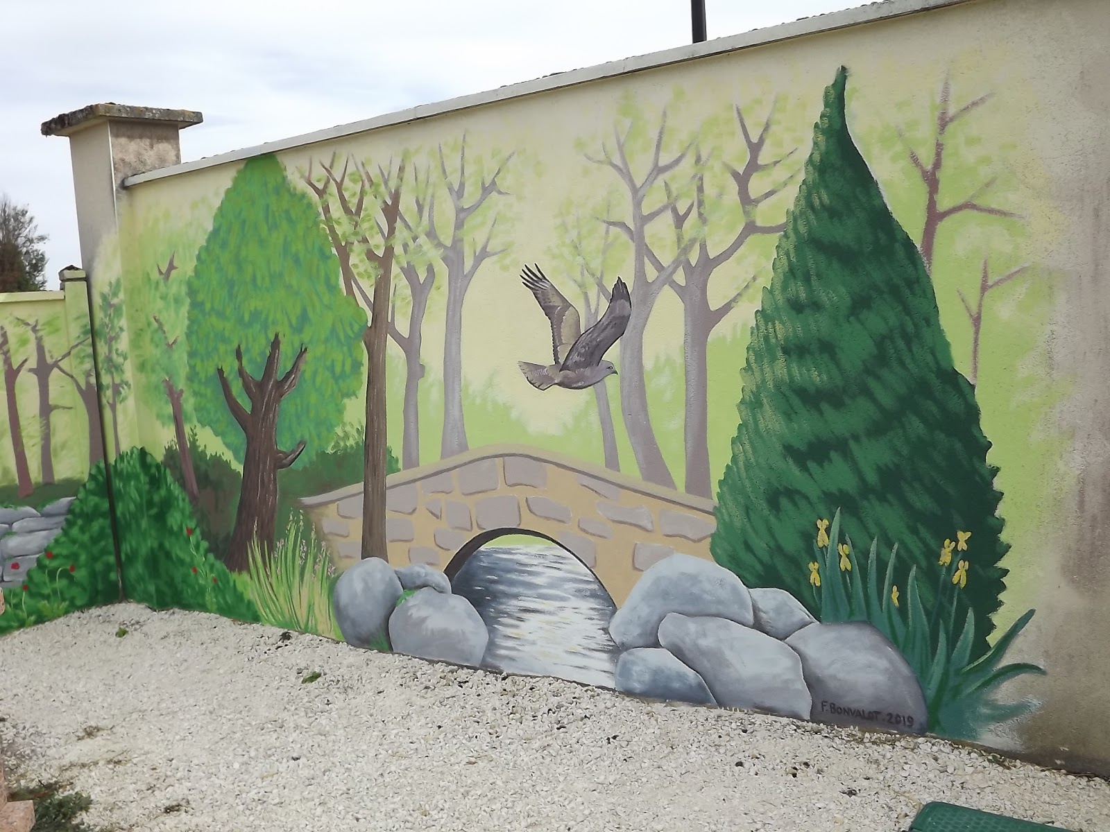 Fred Bonvalot Illustration Graphisme Peinture Murale Pour Le Jardin Du Souvenir A Sougeres En Puisaye