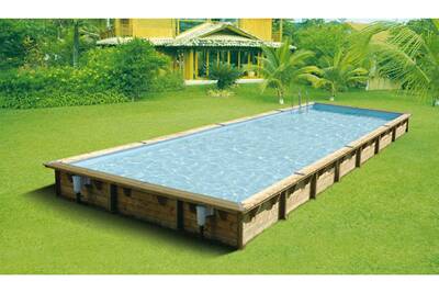 Piscine Bois Linea Ubbink 350x650cm H 140cm Liner Bleu Sable Gris