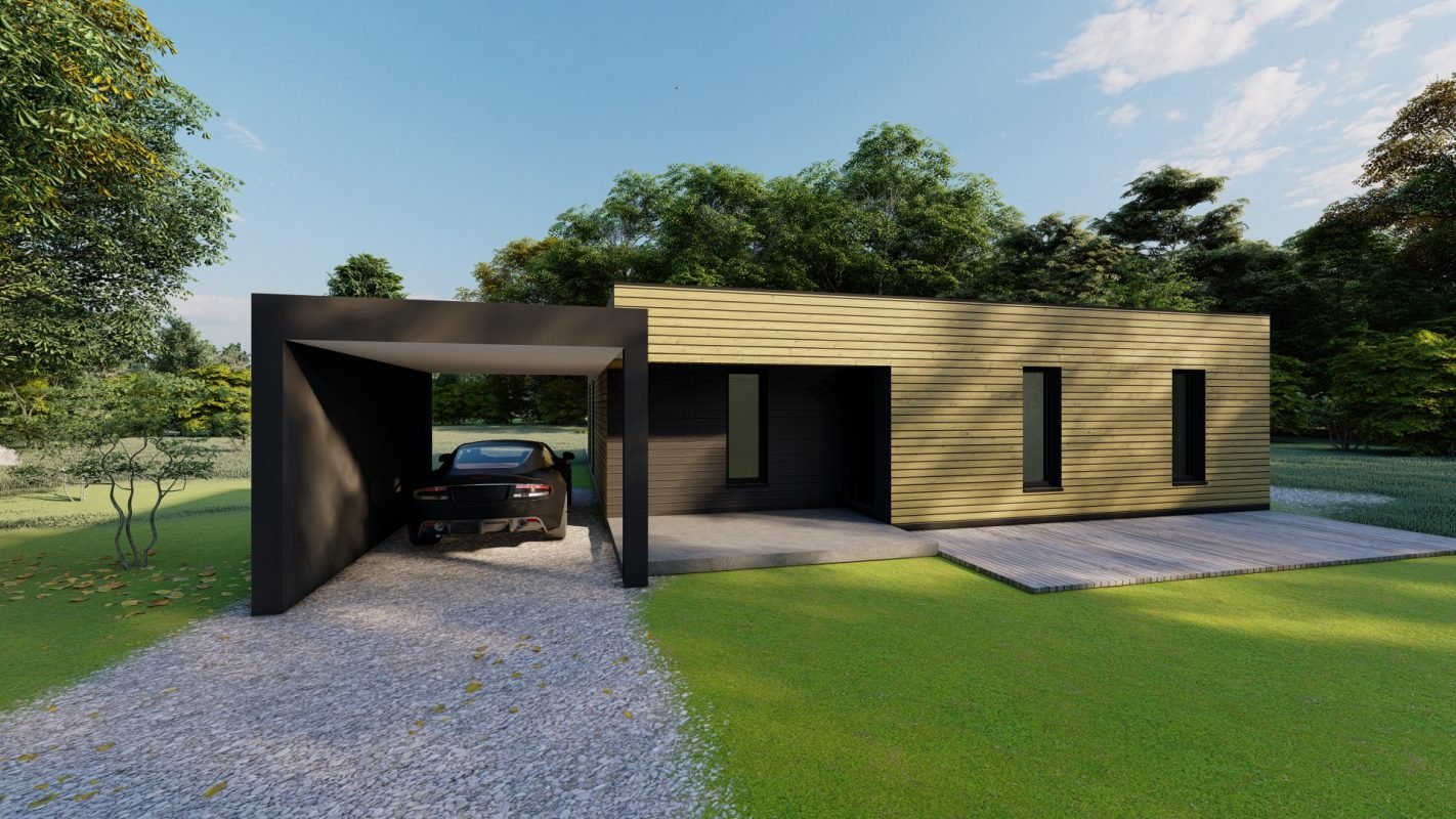 Maison Ossature Bois Contemporaine T4 Plain Pied 69 28m2