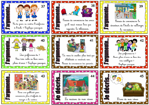 Ateliers d'ecriture ce1/ce2 Lorsque j'ai eu des CE2 , je me suis rendu compte que mon atelier d'écriture prévu à la base pour un CM1/CM2 était décidément trop complexe pour mes élèves J'ai donc décidé de créer un autre atelier, plus simple, demandant d'écrire une à quatre/cinq phrases. L’ensemble couvre les 6 chapitres de l’album. Les élèves en panne d'inspiration pourront y piocher une carte contenant une courte accroche et se lancer dans l'écriture Au programme de ces cartes, des images séquentielles, des questions sur ce qu'ils aiment, regardent, lisent, des histoires à inventer à partir de 3 mots donnés.
