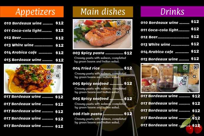 Modele Menu Restaurant Noir 3 Rangees Avec 3 Grandes Images Postermywall