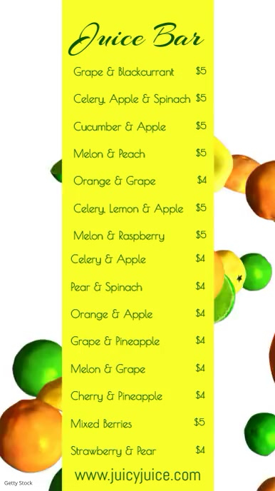 Copy Of Fresh Juice Smoothie Bar Menu Template Postermywall