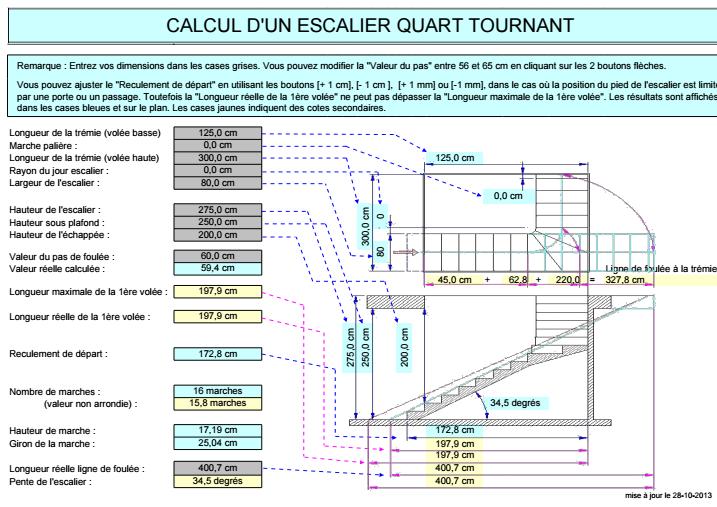Calcul D Un Escalier Quart Tournant En Feuille Excel Cours Genie Civil Outils Livres Exercices Et Videos
