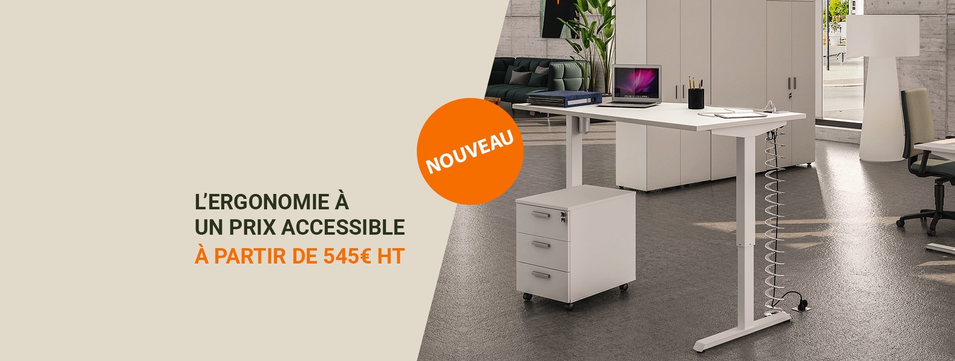 Bureau assis debout Aktiv 0 Le bureau assis debout électrique Aktiv 0 efficacité, simplicité, robustesse Hauteur de 64 à 129 cm multimorphologies 2 Moteurs performants (1 dans chaque pieds) Télécommande à mémoire Système anticollision Piétements gris argenté ou noir graphite. Le bureau assisdebout permet de varier les positions tout au long de votre journée de travail Vous passez de la position assise à la position debout simplement en abaissant ou en rehaussant votre plan de travail Ce mobilier ergonomique est parfait pour éviter le mal de dos, dynamiser la circulation sanguine et limiter les risques de prise. Bureau assis debout Meuble imprimante Bureau extensible Bureau industriel Meuble informatique Table de chevet industriel Bureau noir Etagere bureau Promotion Top ventes 159 € 99 93 € 99 41% VASAGLE Bureau informatique, Table d'ordinateur, longueur 137 cm, avec 4 étagères, grand dessus, stable, montage facile, pour bureau.