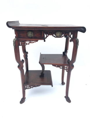 Petite Table En Bois Exotique Tres Dense Sculptee De Motifs Floraux Chine Xixeme Siecle 10