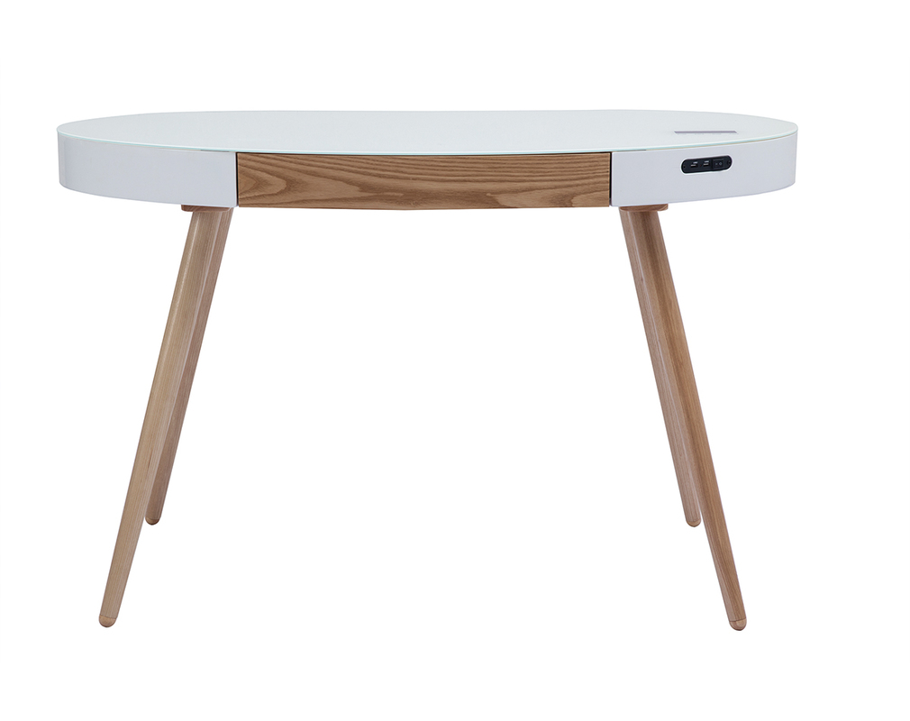 Achat Bureau Connecte Multimedia Verre Blanc Et Bois Clair Clever Style Design Scandinave