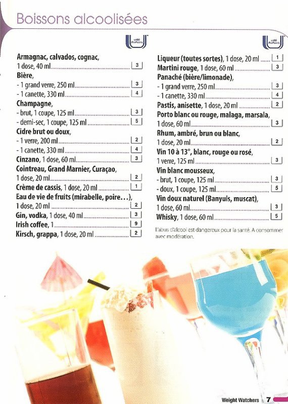 Weight watchers cuisine saveur/minceur guide restauration guide des courses fascicules et fiches pas cher En utilisant Rakuten, vous acceptez l'utilisation des cookies permettant de vous proposer des contenus personnalisés et de réaliser des statistiques. L'alcool coûte cher en points mais n'est pas interdit Se référer à la liste alimentaire On l'inclue simplement dans les 14 points généralement consacrés aux extras, ses 14 points font partie du total semaine Dans la méthode que je fais, c'était comme ceci quelques exemples Alcool de fruits, cognac, gin, vodka, 3 cl (1) Bière, 25.