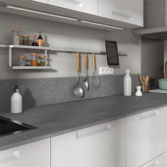 Plan De Travail Stratifie Effet Marbre Anthracite Mat L 315 X P 65 Cm Ep 16 Mm Leroy Merlin
