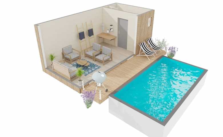 Chalet de vacances à usage privatif Grâce a leur fort isolation et aux matériaux utilisés ces studios de jardin sont en réalité de minimaisons et ils peuvent être utilisé été comme hiver, en ville, à la mer ou en montagne donc c’ est un investissement qui peut être très vite amorti. Le choix du type d'extension peut s'avèrer difficile pour un particulier Recourir à un professionnel reste alors une solution efficace Pour bien choisir le type d'extension adapté à votre maison, il faut tenir compte en premier lieu de la nature de votre maison (ancienne ou moderne), de la configuration du projet (matériaux utilisés, l'environnement) etc. Maison en L moderne de plainpied et haut de gamme, elle peut contenir 5 chambres, comme sur ce plan et même plus pour les grandes familles !.