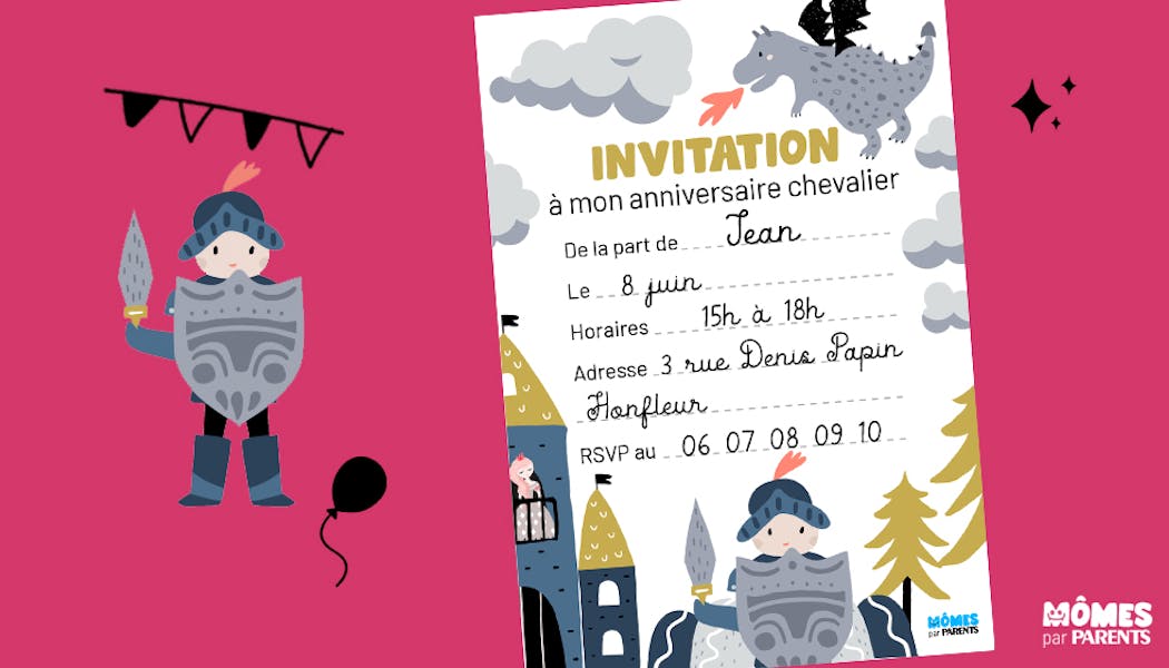 Invitation anniversaire chevalier gratuite a imprimer. Pour une fête originale dès le départ, fabriquez vousmême vos cartons d’invitation d’anniversaire !. Invitation et Décoration anniversaire gratuite à télécharger et à imprimer – thème Chevalier Invitation à imprimer Pour votre anniversaire Chevalier, une invitation à venir festoyer qui surprendra votre bande d’amis !. Carte d'invitation à imprimer gratuite pour anniversaire (fête) fille, garçon, homme ou femme, Pâques FairePart de baptême, Épiphanie (fête des rois), Halloween, mariage (fairepart), Noël ou jour de l'An (Nouvel An), party et surprise party, première communion, pyjama party (soirée pyjama pour fille ou garçon, repas pour diné ou soupé entre amis ou parents, bonne retraite.