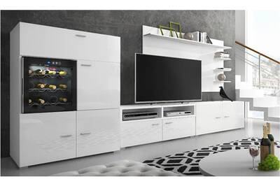 Meuble Tv Comfort Ensemble De Meubles Meuble De Salon Unite Murale Meuble Bas Tv Avec Cave A Vin Refrigerateur La Sommeliere Laque Blanc Blanc Mat 295x175x57 40cm Darty