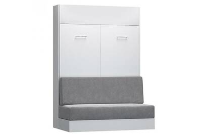 Space Sofa Fast Armoire Lit Escamotable 140 Cm Blanche Avec Canape Microfibre Grise Rakuten