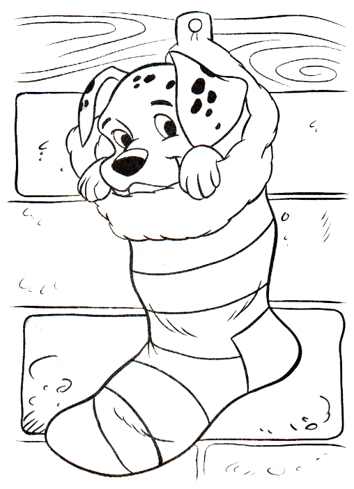 Coloriage De Noel Dessin Un Petit Chien En Cadeau Dans Une Chaussette A Colorier