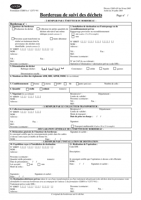 Pour fin de chantier sont de plus soumis aux règles suivantes le comité d'entreprise doit être informé et consulté dans les conditions prévues à l'article L du Code du travail des projets de compression d'effectifs du personnel des chantiers, l'avis des représentants du personnel étant adressé. BORDEREAU DE SUIVI DES DECHETS DE CHANTIER DE BATIMENT ET DE TRAVAUX PUBLICS Déchets banals et déchets inertes Bonjour à tous J'ai téléchargé ce PDF Fiche d aide SOSED Bâtiment Seraitil possible de connaitre le nom de cet auteur?. Évaluation 44, 23 votes;.