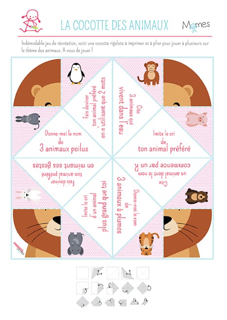 Chaque joueur avance une cocotte à la fois Quand un joueur a fait un tour complet avec sa cocotte, il peut la mettre au centre dans l'herbe Le joueur qui gagne est celui qui amènera ses 3 cocottes au centre Amusezvous bien !. Voici une cocotte en papier spéciale pour la récréation !Si votre loulou se révèle être plutôt habile de ses mains, testez notre tuto pour créer des trophées animaux en origami qui décoreront sa chambre ou des marionnettes faciles en papier !. Pour ceux qui n’ont pas d’imprimante (n’est ce pas ma Lily ️!.