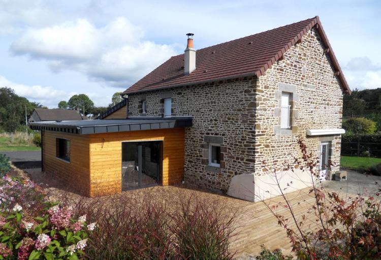 Extension bois maison pierre. Maison ossature bois, charpente traditionnelle, habitat léger;. Très beau projet d’agrandissement d’une maison en pierre bretonne L’architecte a utilisé une double extension ou extension traversante qui permet d’étendre la maison sur ses 2 faces Cette extension a été réalisée en panneaux ossature bois et a permis d’obtenir un agrandissement de m2 (SHON) Vue intérieure de l’extension Qui a réalisé cette extension. Extension en bois d’une maison en pierre – Extension cubique Lire la suite Extension d’une maison des années 30 Extension d’une maison bourgeoise des années 30 (transformé en immeuble) à Lyon extension béton de 55 m2 avec aménagement intérieur de 100 m2 Cette extension de maison a été conçue en béton (la façade restera.