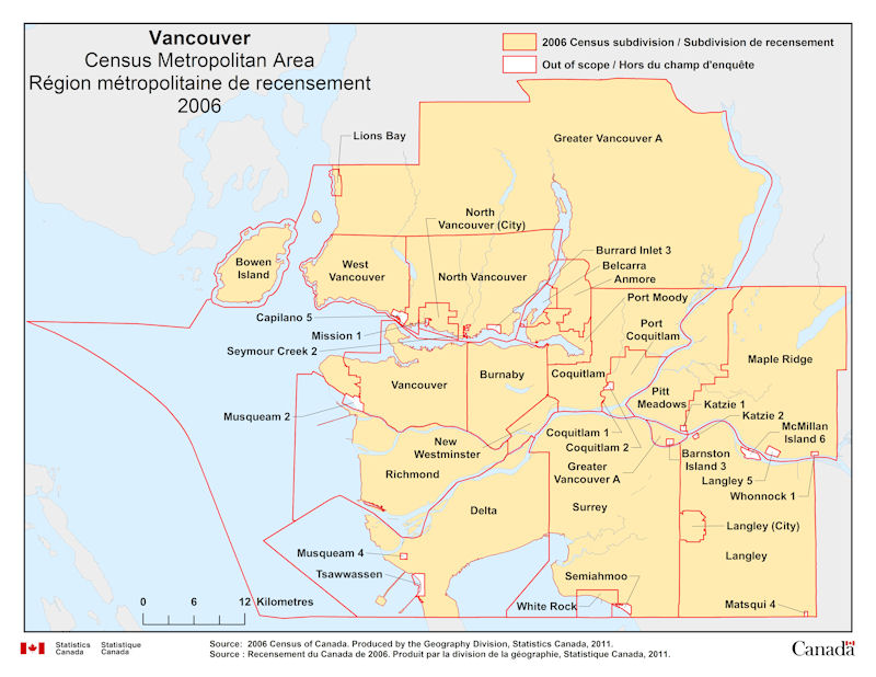 Carte Geographique De La Region Metropolitaine De Recensement De Vancouver Colombie Britannique