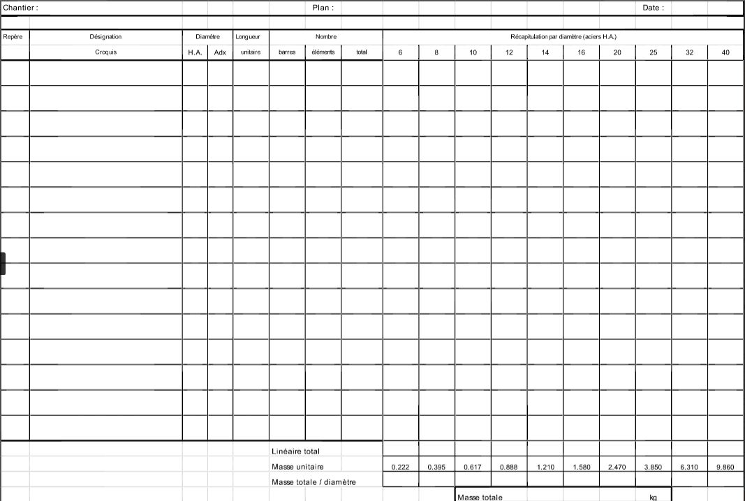 Tableau Excel Recapitulatif De Types D Aciers Btp Cours Genie Civil Outils Livres Exercices Et Videos